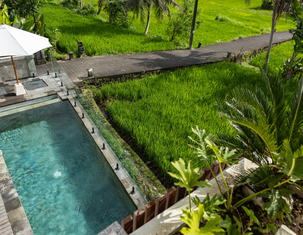 Find your peace in this charming 2-bedroom villa surrounded by rice fields, and the soft sounds of morning birdsong. Whether you're here to slow down or explore, this villa offers the perfect setting for families or small groups seeking both comfort and connection with nature. Cool off in the own pool, unwind in the living space, or head out to the nearby sports hub for some active fun. You'll enjoy the best of rural living with all the essentials within easy reach — including dining, wellness, and recreational options.